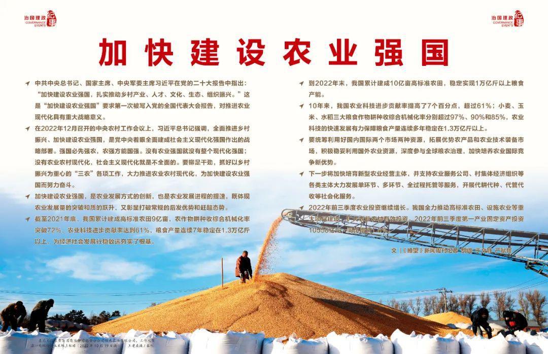 ◆ 在2022年12月召開的中央農(nóng)村工作會議上,習(xí)近平總書記強(qiáng)調(diào),全面推進(jìn)鄉(xiāng)村振興、加快建設(shè)農(nóng)業(yè)強(qiáng)國,是黨中央著眼全面建成社會主義現(xiàn)代化強(qiáng)國作出的戰(zhàn)略部署。強(qiáng)國必先強(qiáng)農(nóng),農(nóng)強(qiáng)方能國強(qiáng)。沒有農(nóng)業(yè)強(qiáng)國就沒有整個現(xiàn)代化強(qiáng)國;沒有農(nóng)業(yè)農(nóng)村現(xiàn)代化,社會主義現(xiàn)代化就是不全面的。要鉚足干勁,抓好以鄉(xiāng)村振興為重心的“三農(nóng)”各項(xiàng)工作,大力推進(jìn)農(nóng)業(yè)農(nóng)村現(xiàn)代化,為加快建設(shè)農(nóng)業(yè)強(qiáng)國而努力奮斗。