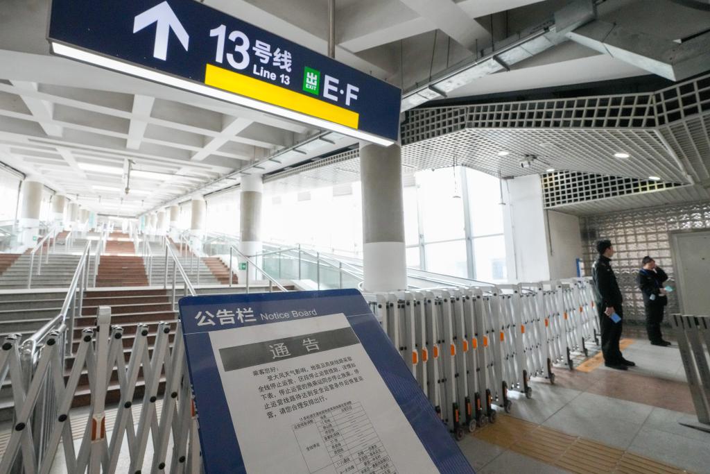 4月12日,北京地鐵西直門站13號線換乘入口張貼了部分軌道交通線路因大風(fēng)天氣停運(yùn)的通知。當(dāng)日,我國北方多地出現(xiàn)大風(fēng)降溫天氣。新華社記者 鞠煥宗 攝