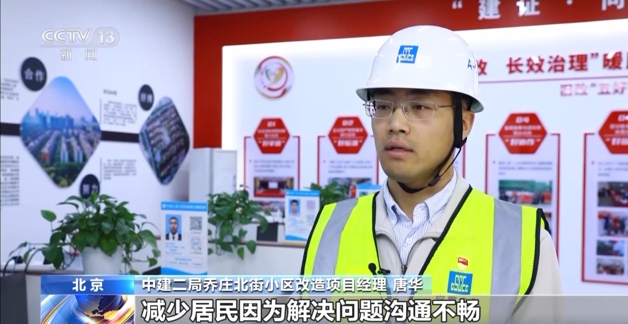 中建二局喬莊北街小區(qū)改造項(xiàng)目經(jīng)理 唐華:借鑒物業(yè)式的管理,想出來的這種施工樓棟管家服務(wù)模式,減少居民因?yàn)榻鉀Q問題溝通不暢導(dǎo)致的一些投訴。