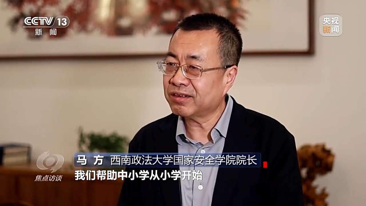 西南政法大學國家安全學院院長 馬方:從去年開始,我們開始做國家安全宣傳教育年,幫助中小學從小學開始,建立一體化課程體系。我們特別要求國家安全學的碩士、博士,海外利益安全的本科生必須要參加宣講團,在參加宣講團的過程中去理論學習、調研,實際上是對專業(yè)學習深化實踐的過程。
