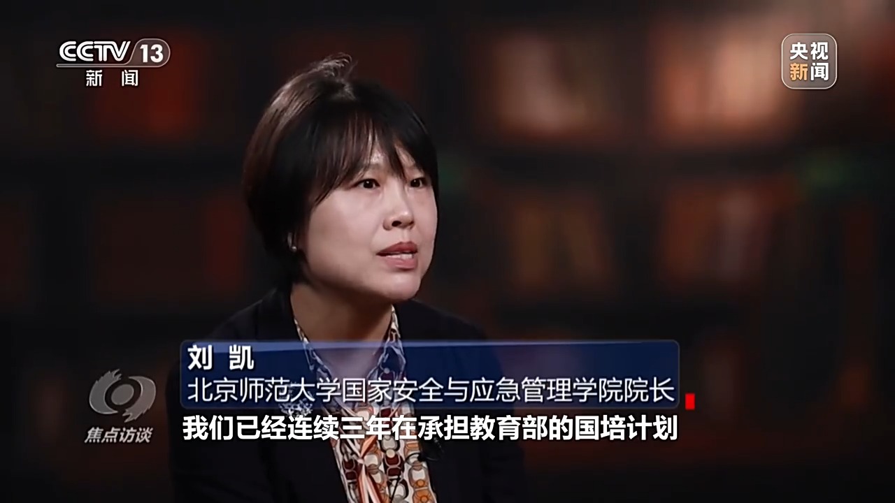 北京師范大學國家安全與應急管理學院院長 劉凱:我們已經連續(xù)三年承擔教育部的國培計劃。國培計劃就是給全國的中小學教師講授國家安全相關的基本知識,等他們回到自己的學校,在他們日常授課的時候,就能夠把國家安全的知識融入數學課程、物理課程,包括其他一些課程中,這是一個非??沙掷m(xù)的路徑。