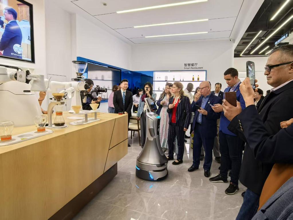 機(jī)器大廚、機(jī)器舞者、機(jī)器咖啡師……在九江機(jī)器人小鎮(zhèn),使節(jié)們與各種功能的機(jī)器人“親密接觸”,現(xiàn)場體驗(yàn)智慧家居、智慧政務(wù)、咖啡機(jī)器人、無人餐廳帶來的便捷。