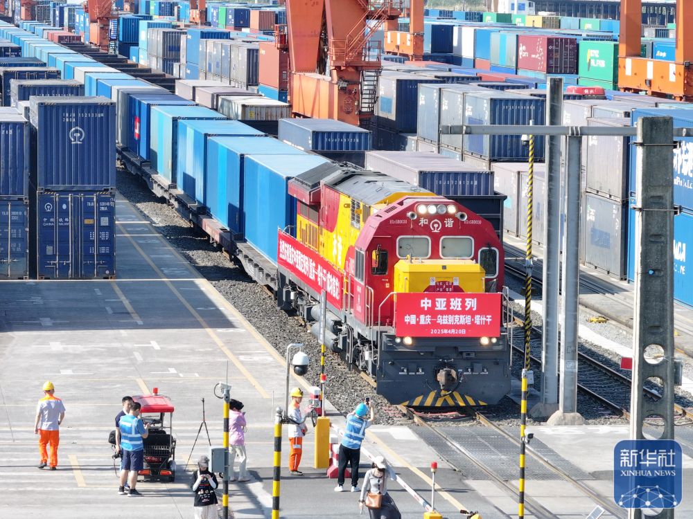 4月20日,圖定中亞班列在重慶團(tuán)結(jié)村中心站順利發(fā)車。