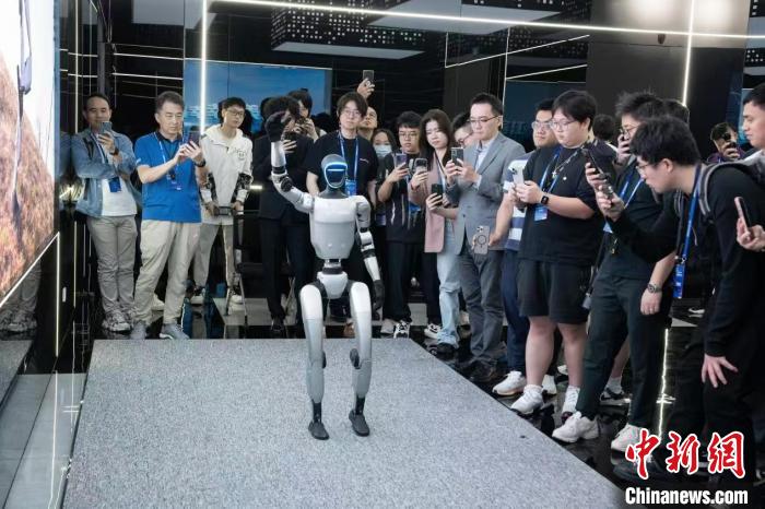 4月18日,港澳青年在杭州高新區(qū)(濱江)展廳觀看宇樹機器人表演?!蔷?攝