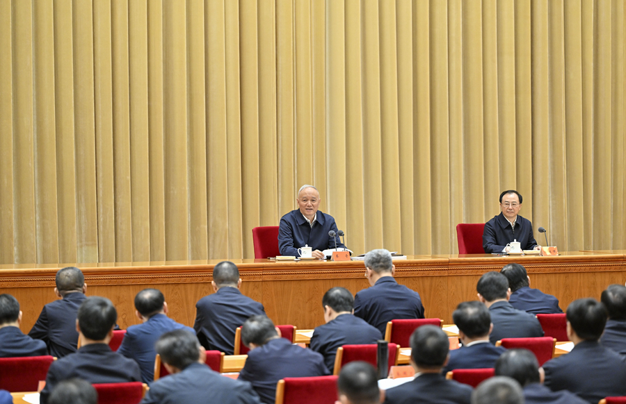 4月24日,全國黨委和政府秘書長會議在北京召開。中共中央政治局常委、中央辦公廳主任蔡奇出席會議并講話。新華社記者 殷博古 攝