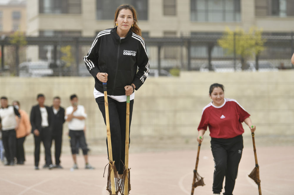 從上學(xué)時,柔鮮古麗就熱衷于參與各項體育活動。無論是籃球、排球還是最擅長的高腳競速,她總會擠出時間報名參賽。她說,體育就像一道光,多年來照亮了大漠邊緣的生活。“它不僅可以鍛煉身體,也能舒緩我在生活中遇到的壓力。”