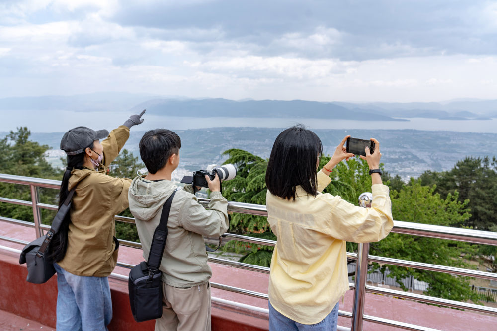 2025年4月23日,游客在大理蒼山玉帶路欣賞風(fēng)光。新華社發(fā)(羅鑄攝)