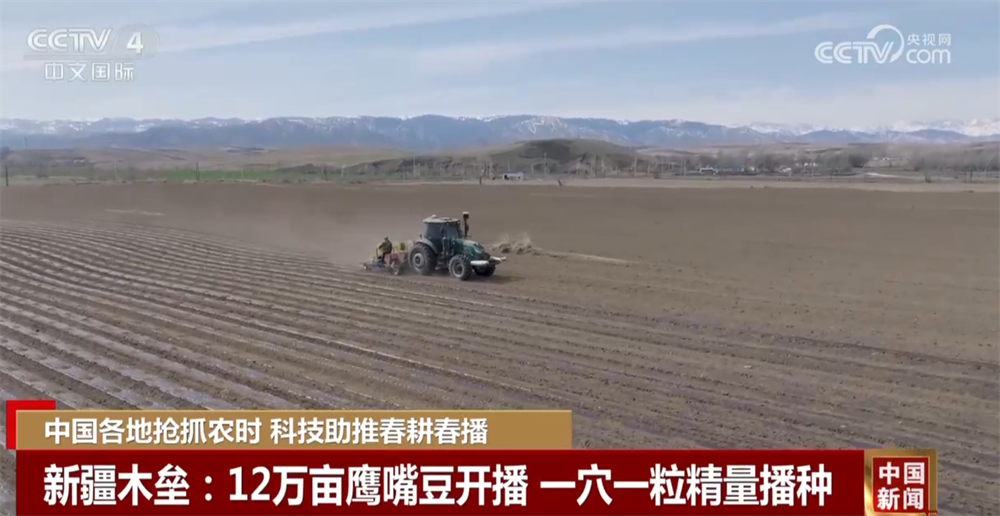 新疆木壘:12萬畝鷹嘴豆開播 一穴一粒精量播種