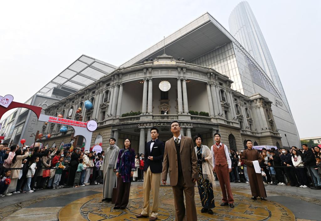 “我們此前還在百年建筑空間創(chuàng)新打造城市舞臺(tái),帶來(lái)‘空中音樂(lè)劇快閃演出’,打開(kāi)沿街一側(cè)窗口,配合炫目的光影效果和演員表演,為商圈注入活力?!碧旖蚝懵V場(chǎng)相關(guān)工作人員說(shuō)。
