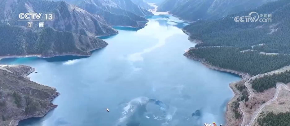 每年冬天,海拔1900多米的天山天池湖面封凍,封凍期達100多天。“五一”前夕,新疆阜康市天山天池景區(qū)冰雪消融,正式迎來“開湖”。