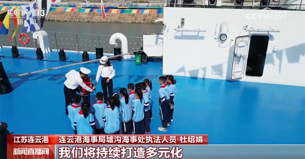 連云港海事執(zhí)法人員還化身“安全老師”,給同學(xué)們普及乘船安全須知、救生衣正確穿著、溺水自救技巧等。