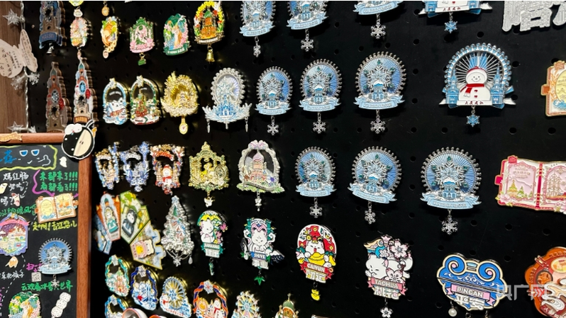 假日期間,各大文博場館、歷史文化街區(qū)等把握住機遇,推陳出新,創(chuàng)新形式,滿足游客多元化需求。哈爾濱中央大街將城市文化與AR技術(shù)相融合,推出了兼具科技感與城市文化的文創(chuàng)產(chǎn)品。“這款冰箱貼在去年的基礎(chǔ)上做了一個全新升級,結(jié)合AR技術(shù),通過手機‘掃一掃’功能,可以看到一個動態(tài)視頻,實現(xiàn)裸眼3D的效果?!敝醒氪蠼铸埢浤Х熊嚳偨?jīng)理于洋說。