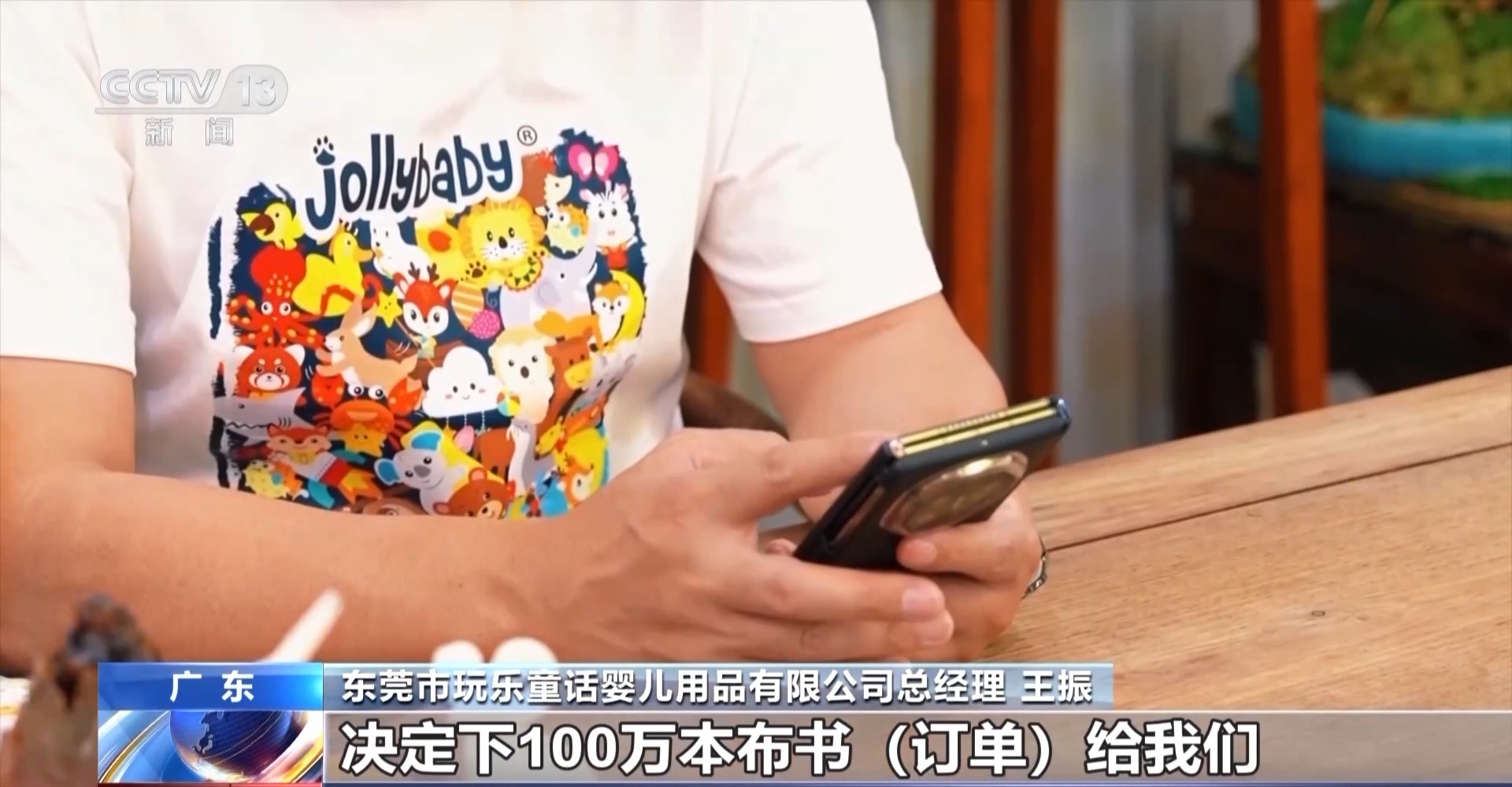 東莞市玩樂(lè)童話嬰兒用品有限公司總經(jīng)理 王振:到晚上12點(diǎn)多他們就發(fā)信息給我,決定在我們這里下100萬(wàn)本布書訂單,當(dāng)時(shí)我們大家非常非常興奮。
