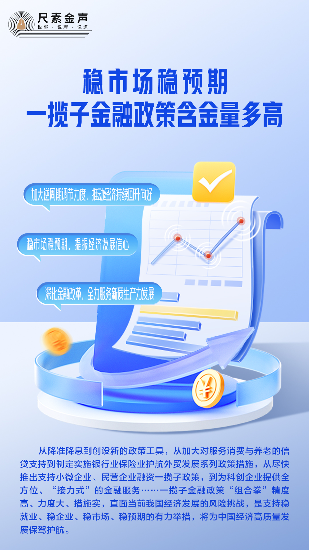 從降準降息到創(chuàng)設(shè)新的政策工具,從加大對服務消費與養(yǎng)老的信貸支持到制定實施銀行業(yè)保險業(yè)護航外貿(mào)發(fā)展系列政策措施,從盡快推出支持小微企業(yè)、民營企業(yè)融資一攬子政策,到為科創(chuàng)企業(yè)提供全方位、“接力式”的金融服務……一攬子金融政策“組合拳”精度高、力度大、措施實,直面當前我國經(jīng)濟發(fā)展的風險挑戰(zhàn),是支持穩(wěn)就業(yè)、穩(wěn)企業(yè)、穩(wěn)市場、穩(wěn)預期的有力舉措,將為中國經(jīng)濟高質(zhì)量發(fā)展保駕護航。