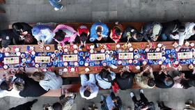 因?yàn)殡娪啊赌倪?》而火爆“出圈”的貴陽越界影城,經(jīng)常舉辦“花式寵粉”的活動(dòng)。比如在影城門口擺起具有當(dāng)?shù)靥厣摹敖z娃娃”長(zhǎng)桌宴。