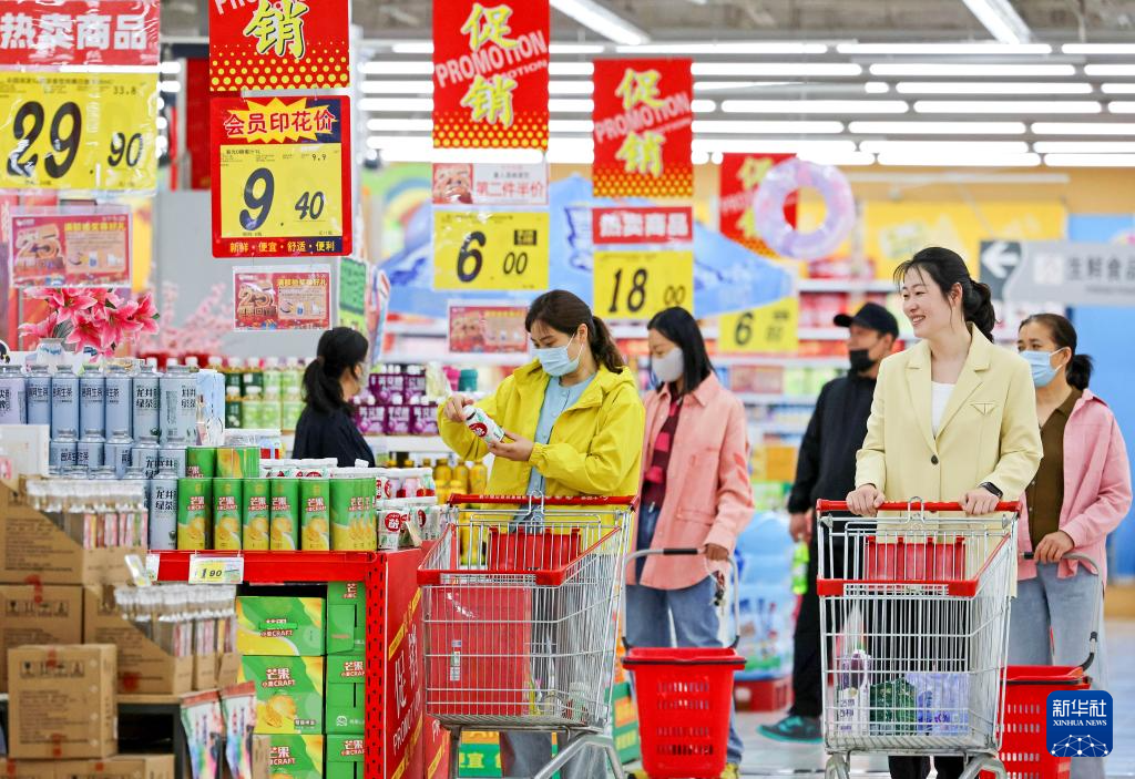 5月10日,消費(fèi)者在山東省棗莊市一家超市選購商品。新華社發(fā)(孫中喆攝)
