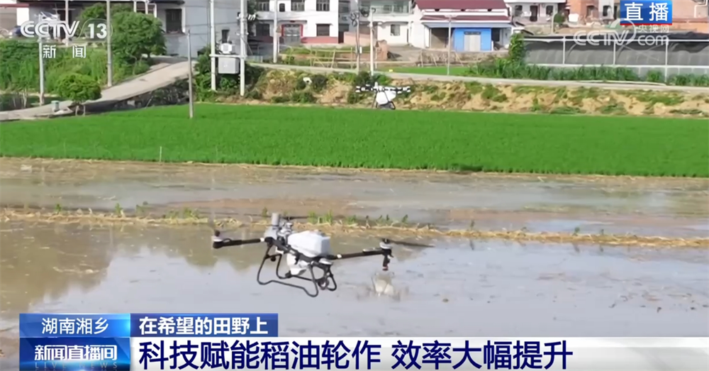 在這個(gè)階段,還有一件非常重要的工作就是施肥。眼下,施肥已經(jīng)很少依靠人工了?,F(xiàn)場(chǎng),大型的農(nóng)業(yè)無(wú)人機(jī)正在作業(yè),肥料均勻?yàn)⒃谔锢?。無(wú)人機(jī)還能做到自動(dòng)避障、自動(dòng)調(diào)節(jié)噴灑量,配備光譜儀還可以檢測(cè)莊稼的長(zhǎng)勢(shì),作業(yè)1畝地只需要不到20秒。