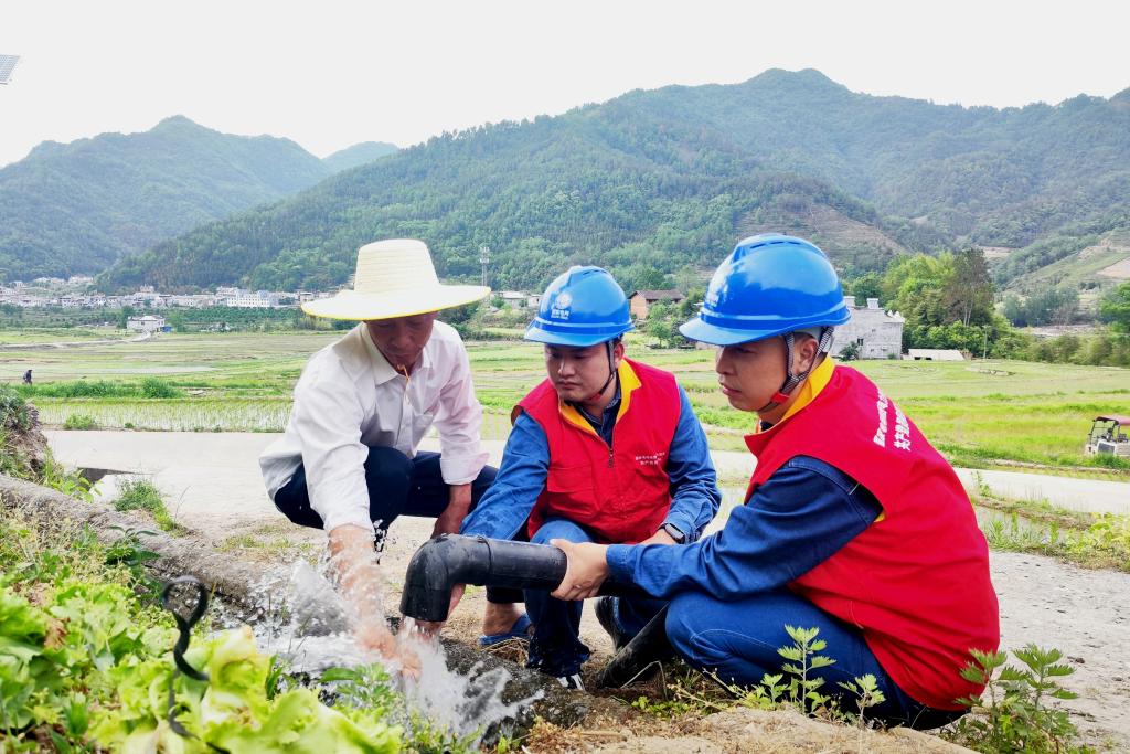 國家電網(wǎng)陜西省平利縣供電公司黨員服務(wù)隊在陜西平利縣秋河村幫助農(nóng)戶調(diào)試抽水水泵。(陳思源 攝)