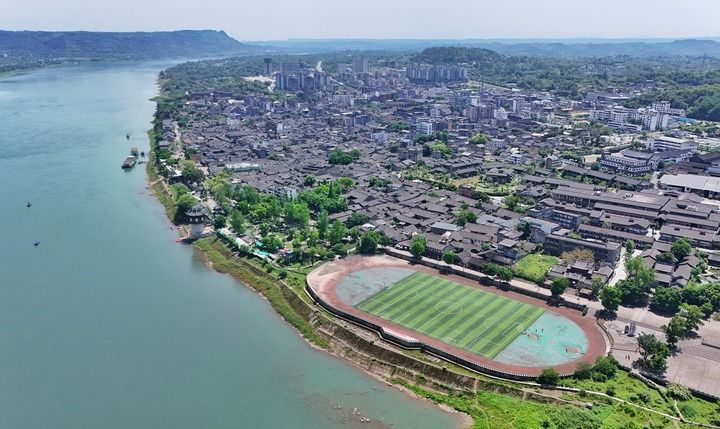 今天的李莊鎮(zhèn)上,位置最好的地方修成了李莊中學。學校操場坐落在長江邊,白天供孩子們運動,夜里向公眾開放。