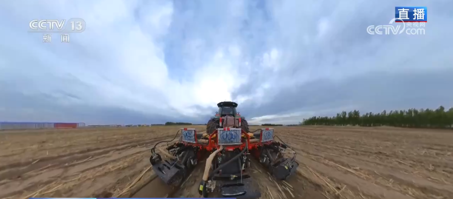 在吉林省通榆縣興隆山鎮(zhèn)的一處玉米示范田,當(dāng)?shù)負(fù)屪デ绾锰鞖?,進(jìn)行最后100畝玉米的播種作業(yè)?,F(xiàn)場(chǎng)幾臺(tái)條耕機(jī)馬力全開(kāi),穿梭在廣袤的田野間。緊隨條耕機(jī)之后的播種機(jī),依托搭載的北斗導(dǎo)航系統(tǒng)精準(zhǔn)定位播種。不到十分鐘,十畝玉米田便完成從耕作到播種的全流程作業(yè)。據(jù)合作社的負(fù)責(zé)人介紹,3000畝的玉米田大約2周左右就可以完成播種。