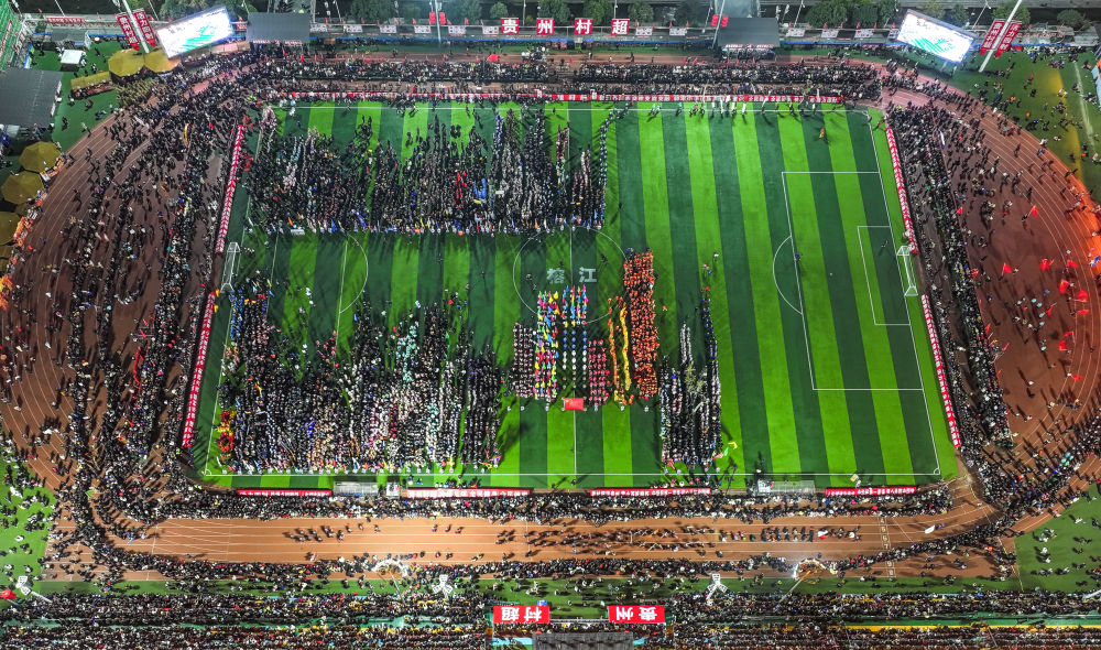 2025年貴州“村超”開幕式現(xiàn)場(chǎng)(2025年1月4日攝,無人機(jī)照片)。新華社記者 楊文斌 攝