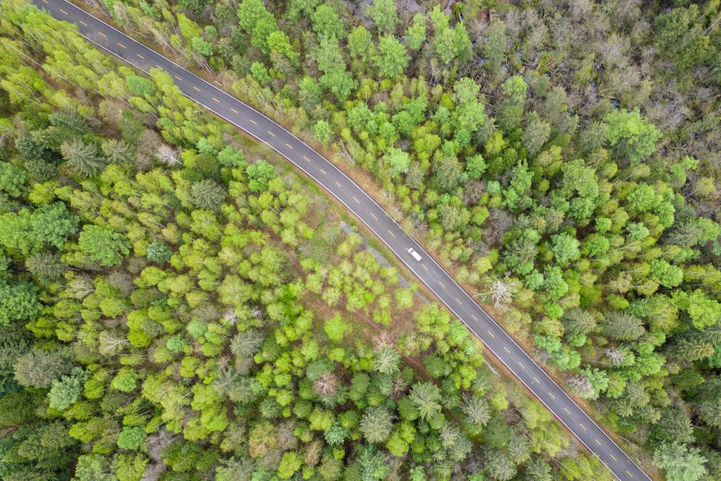 2024年7月11日,游客乘坐電瓶車在伊春市上甘嶺溪水國家森林公園內穿行(無人機照片)。新華社記者 張濤 攝