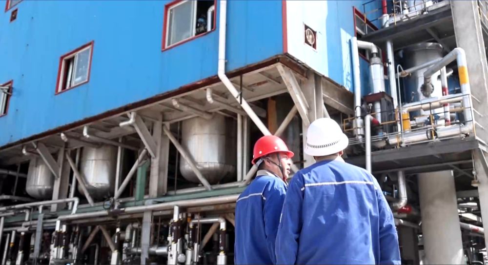 鑫岳化工集團的工作人員在廠房前。新華社記者 王歡 攝