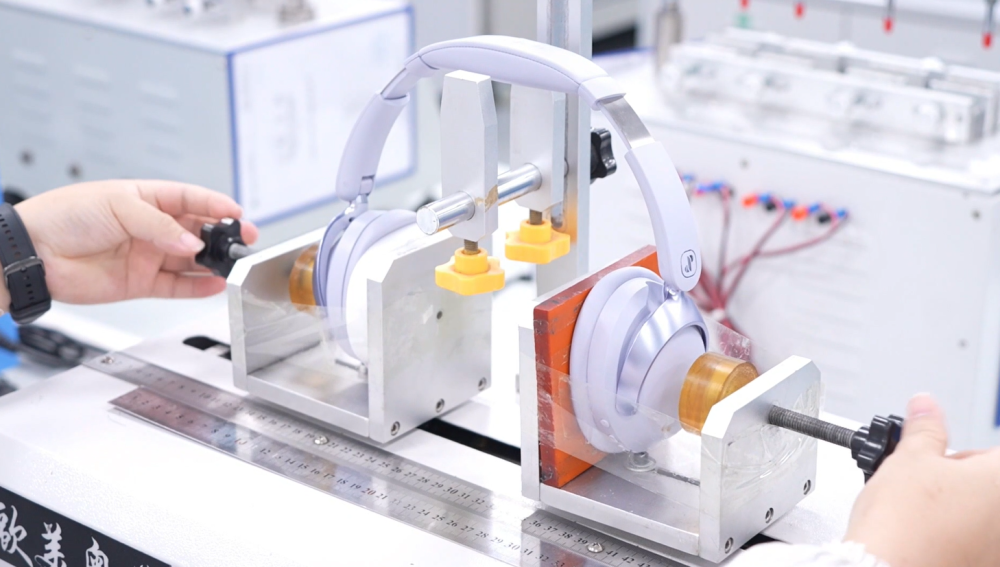 廣東眷蜀科技有限公司車間內(nèi),員工對耳機產(chǎn)品進行技術(shù)檢測。受訪者供圖