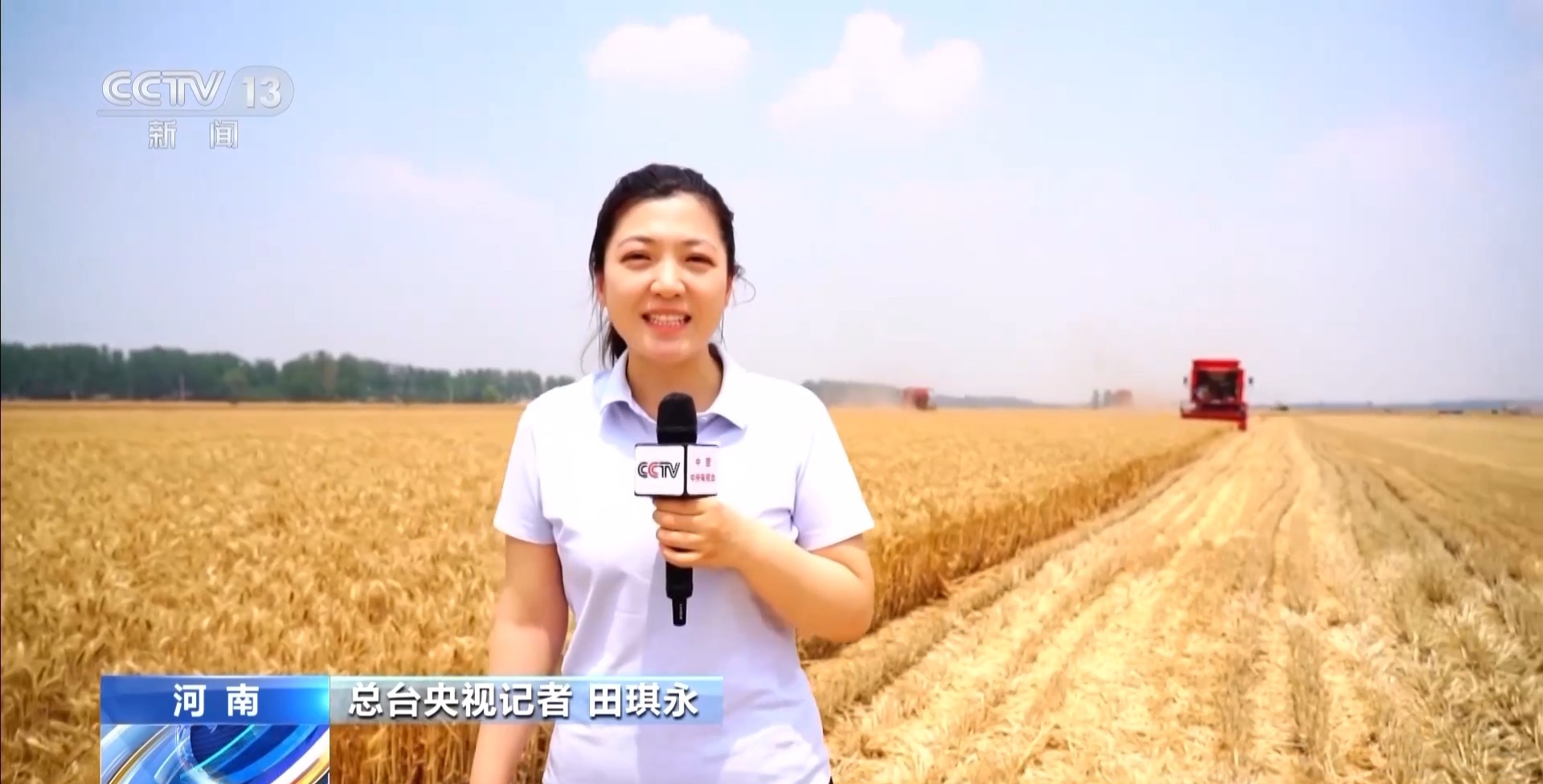 總臺(tái)央視記者 田琪永:我現(xiàn)在是在河南省駐馬店市,目前這里的1100多萬畝小麥正大面積集中成熟,當(dāng)?shù)亟M織了3萬多臺(tái)聯(lián)合收割機(jī)抓緊搶收,確保小麥?zhǔn)赵谶m收期。