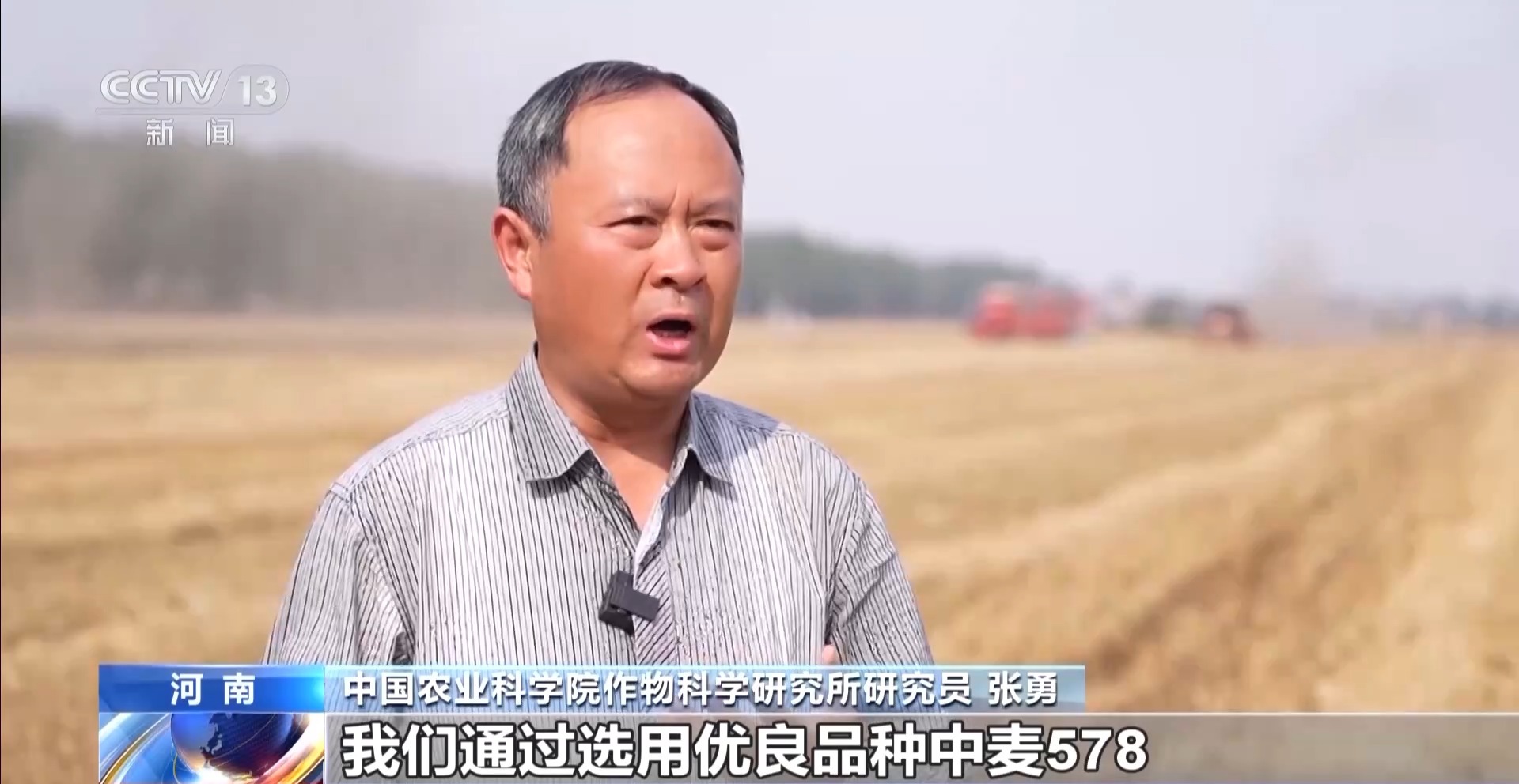 中國(guó)農(nóng)業(yè)科學(xué)院作物科學(xué)研究所研究員 張勇:我們通過選用優(yōu)良品種中麥578,通過適期的晚播,播前播后鎮(zhèn)壓,一噴三防,每畝比咱們的周邊地塊要增產(chǎn)200斤。