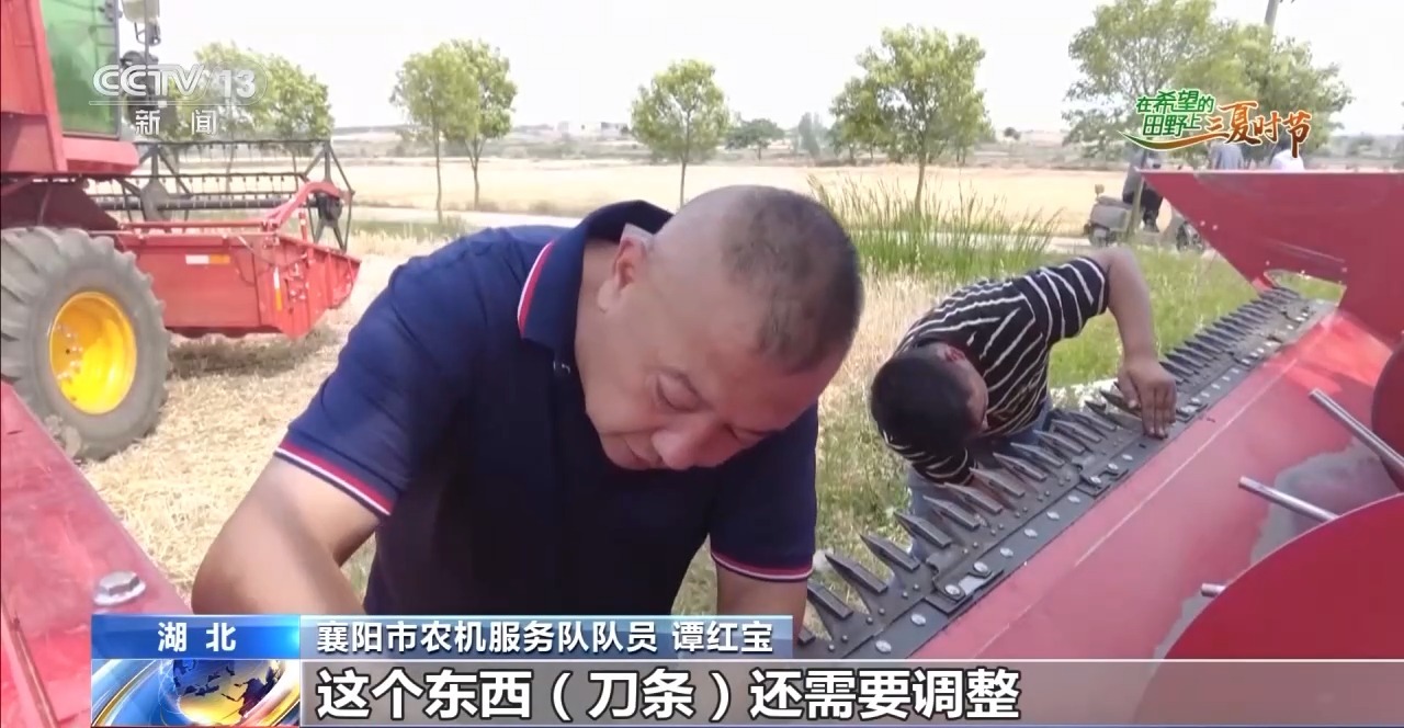 農(nóng)機(jī)維修也是夏收中非常重要的一個(gè)環(huán)節(jié)。在湖北省襄陽市襄州區(qū)黃龍鎮(zhèn)潘明村的1000畝大田里,6臺(tái)收割機(jī)正趕在雨前搶收。突然,一臺(tái)收割機(jī)出現(xiàn)故障止步不前,機(jī)手撥打維修電話20分鐘后,農(nóng)機(jī)服務(wù)車趕到了麥田旁。經(jīng)過檢修發(fā)現(xiàn),這臺(tái)收割機(jī)刀條發(fā)生了斷裂。