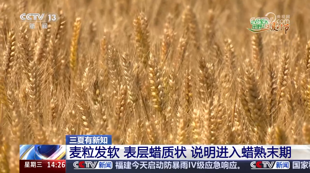 怎樣判斷小麥進(jìn)入蠟熟末期?取一株麥穗,搓掉表皮后看到麥粒呈現(xiàn)深淺不同的黃色,硬度有些發(fā)軟,表層已成蠟質(zhì)狀,這時(shí)候就是小麥蠟熟末期。從遠(yuǎn)處看,麥田上下部分為黃色,中間有一條綠帶,也表明進(jìn)入蠟熟末期。