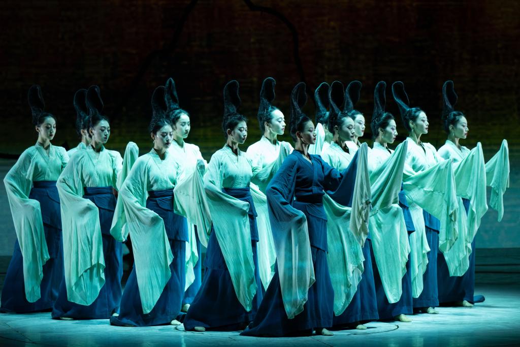 演員在舞蹈詩(shī)劇《只此青綠》中表演。新華社記者 張金加 攝