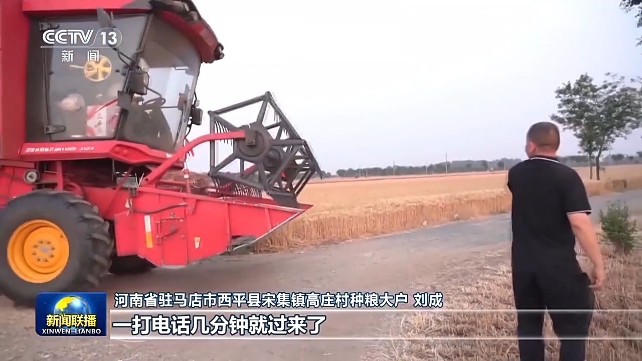 河南省駐馬店市西平縣宋集鎮(zhèn)高莊村種糧大戶 劉成:自己種了有100多畝地,以前叫收割機(jī)都不方便,現(xiàn)在有“農(nóng)機(jī)云”,叫車很方便,哪里車近就叫哪個(gè)車,一打電話幾分鐘就過來了。