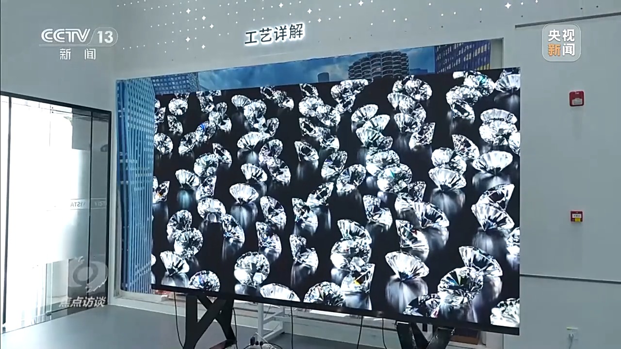 維信諾Micro-LED技術負責人、成都辰顯光電有限公司總經(jīng)理 黃秀頎:這款產(chǎn)品歷經(jīng)了8年的研發(fā)時間,到現(xiàn)在推出全球最新的135英寸TFT基Micro-LED(顯示屏)。它的特點,亮度非常高,而且色彩非常細膩,還原度很高。但是這塊屏是拼接出來的,上面總共有2400萬顆LED發(fā)光點,大的135英寸里面有200片屏,每個屏還要把它組裝成箱體,這里有25個箱體??梢愿鶕?jù)客戶的需求定制大小,只要把箱體拼上去就可以無限擴展,現(xiàn)在拼縫控制的是幾十個微米量級,大概就是頭發(fā)絲直徑的五分之一。