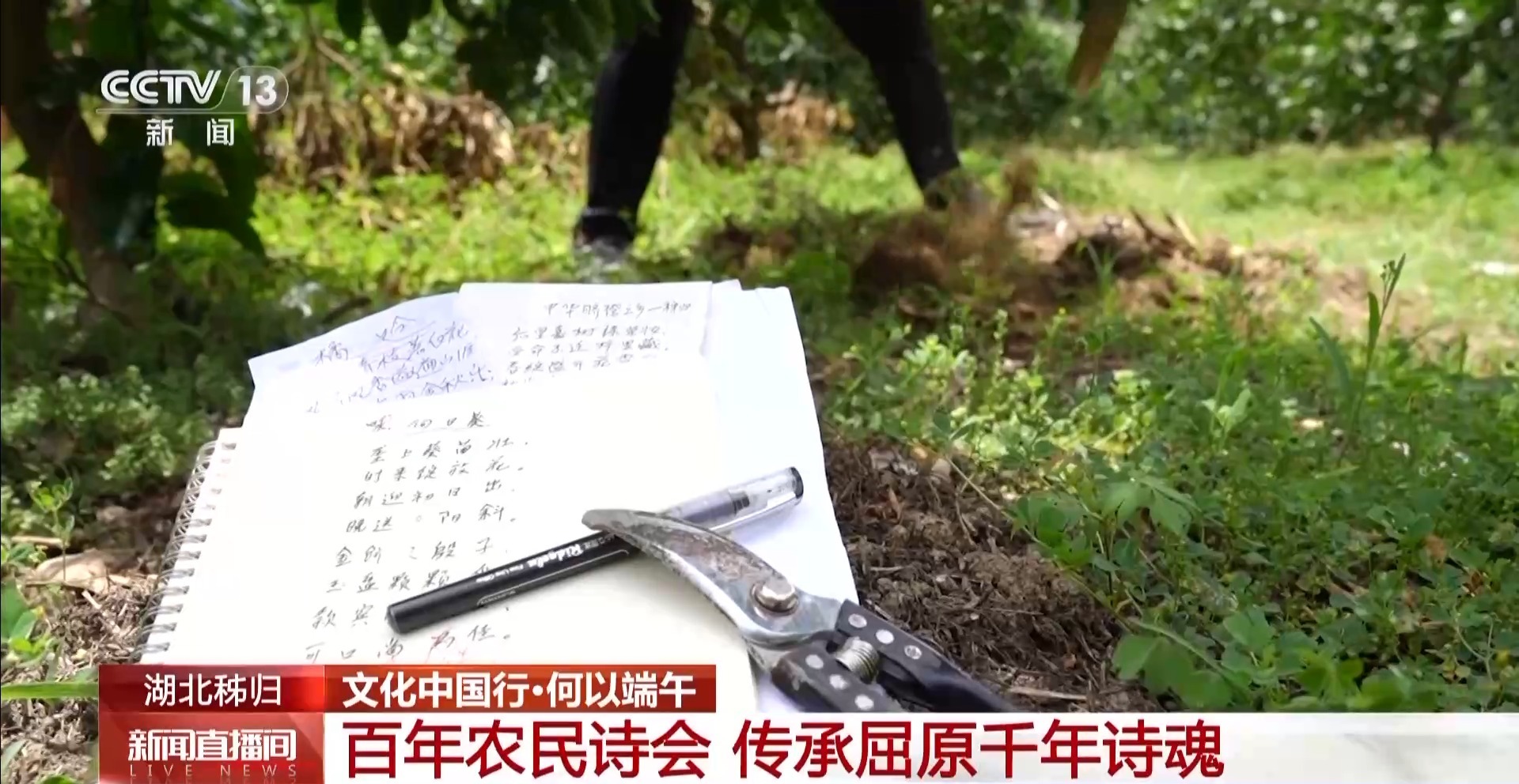 承襲千年詩風(fēng),傳承屈原精神,詩社成員不僅吟唱詩歌,還作詩。對于這些農(nóng)民詩人們來說,每天一手鋤頭、一手詩歌,是大家平日的寫照。今年75歲的黃家兆,60歲時加入詩社,并學(xué)習(xí)作詩。僅靠著老社員的口授,初中文化的他硬是背下了百余個詩詞格律。有時在田間靈感來了,順手撿來的廢紙都可以成為他寫詩的地方。十幾年來,黃家兆共創(chuàng)作了一百二十多首詩歌。田間的橙子,林中的啄木鳥,四季的勞作,豐收的時刻,一首首詩歌記錄著恬靜的歲月,更記錄著為美好生活的奮斗。