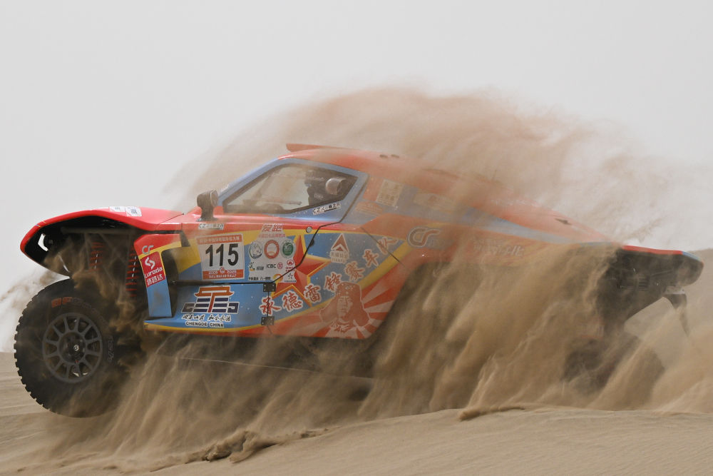 2025年5月28日,明源實(shí)業(yè)·承德雷鋒CR7車(chē)隊(duì)車(chē)手孫昊、領(lǐng)航員王東東在比賽中。當(dāng)日,2025中國(guó)環(huán)塔國(guó)際拉力賽第八賽段在新疆喀什地區(qū)葉城縣進(jìn)行。新華社記者 辛悅衛(wèi) 攝