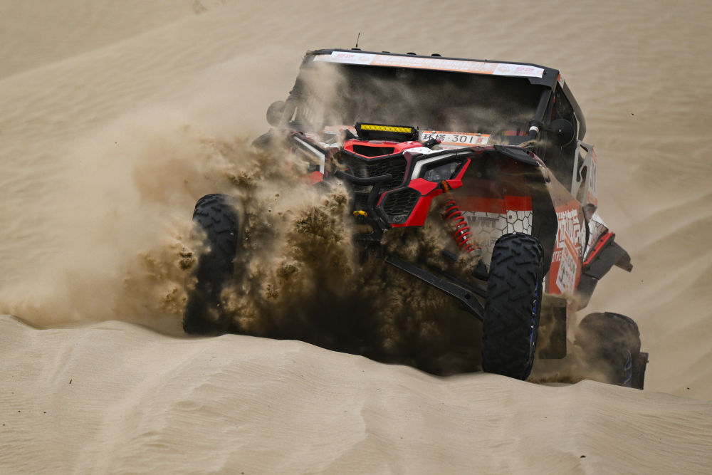 2025年5月31日,極道體育黑熊輪胎車(chē)隊(duì)車(chē)手趙善鵬、領(lǐng)航員郭峰在比賽中。新華社記者 辛悅衛(wèi) 攝