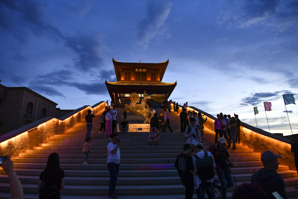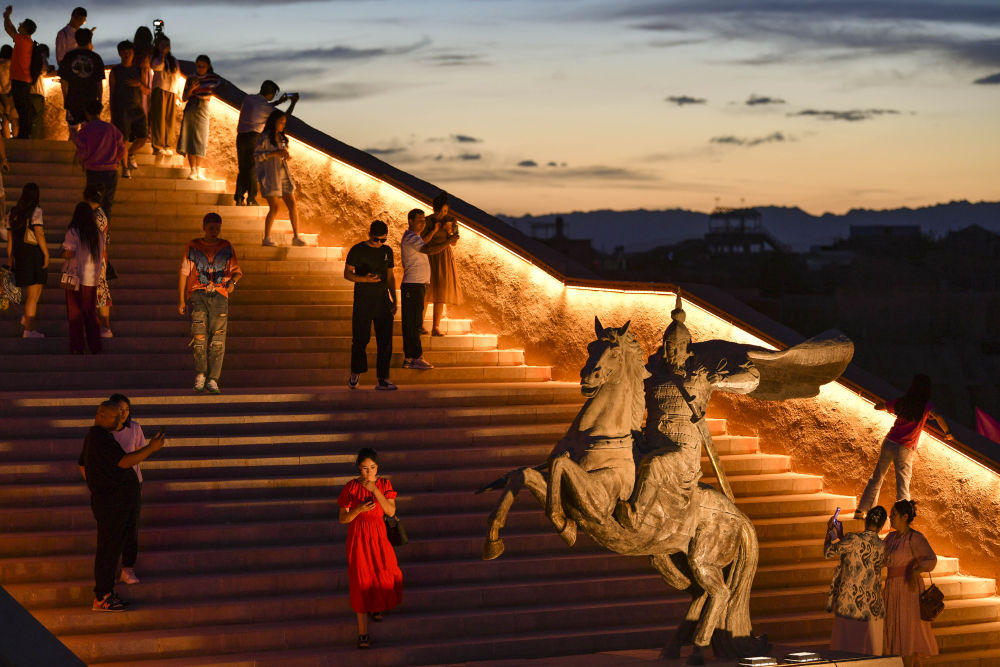 人們?cè)谛陆κ彩斜P(pán)橐城景區(qū)內(nèi)游玩(2023年6月14日攝)。新華社記者 胡虎虎 攝