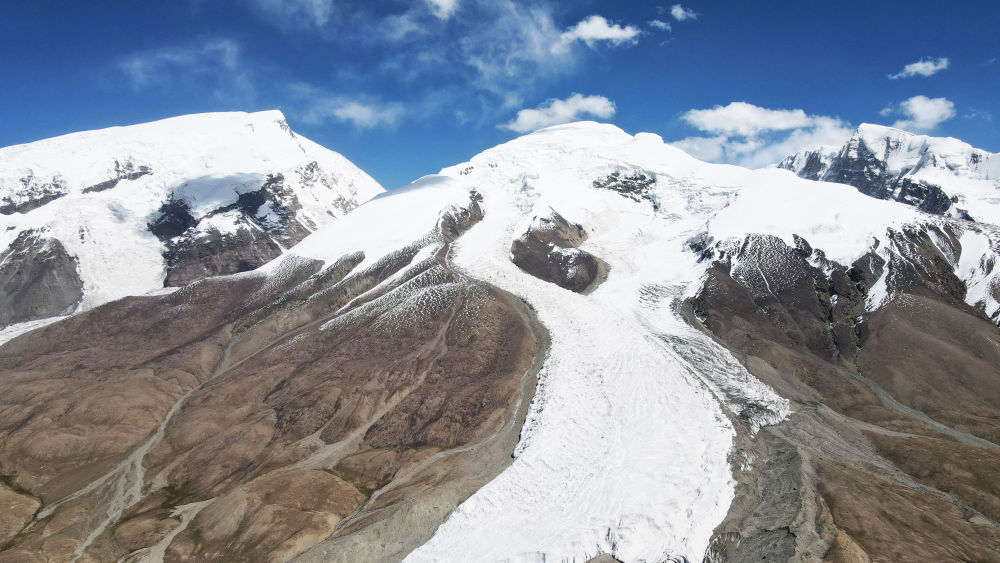 這是在新疆塔什庫(kù)爾干塔吉克自治縣慕士塔格冰川公園拍攝的冰川景觀(guān)(2023年9月6日攝,無(wú)人機(jī)照片)。新華社記者 金皓原 攝