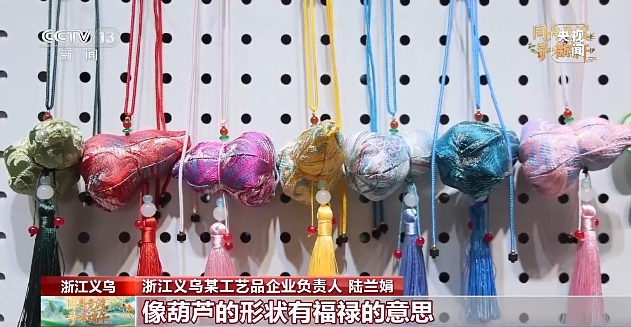 義烏某工藝品企業(yè)負責人 陸蘭娟:今年,在香囊的外觀設計上面,我們結(jié)合了中國傳統(tǒng)節(jié)日祝福的元素,設計了立體葫蘆、柿子等款式。像葫蘆的形狀有福祿的意思;柿子有事事如意的寓意,都是今年的“爆款”。