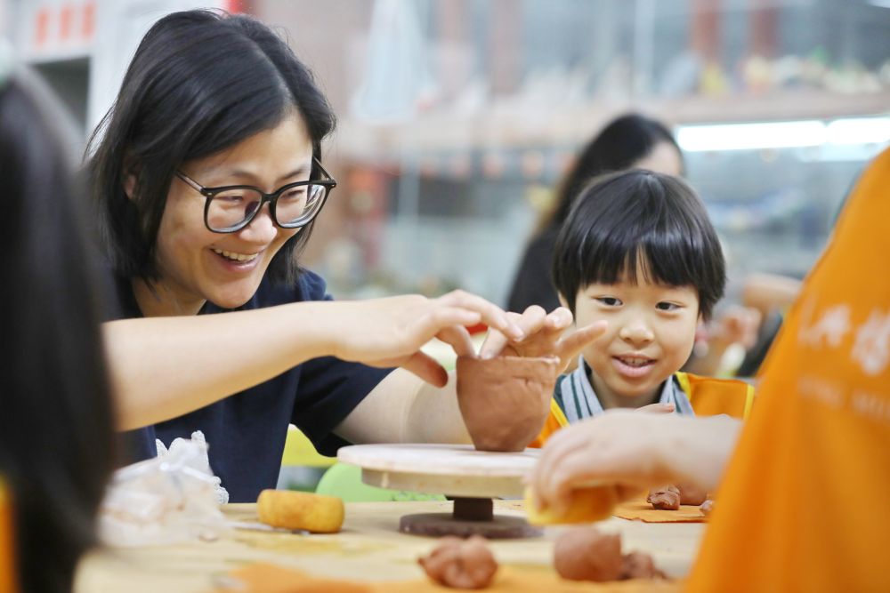 圖為在浙江省嘉興博物館,南湖實(shí)驗(yàn)學(xué)校萬興校區(qū)一年級小學(xué)生和家長一起參加“泥塑悟非遺,親子迎端午”泥塑制作活動。新華社發(fā)(金鵬 攝)