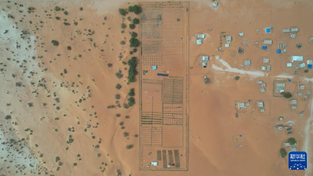 這是5月22日拍攝的位于毛里塔尼亞西部特拉扎區(qū)比爾·巴爾卡村的中非綠色技術(shù)公園(無人機照片)。新華社記者 司源 攝