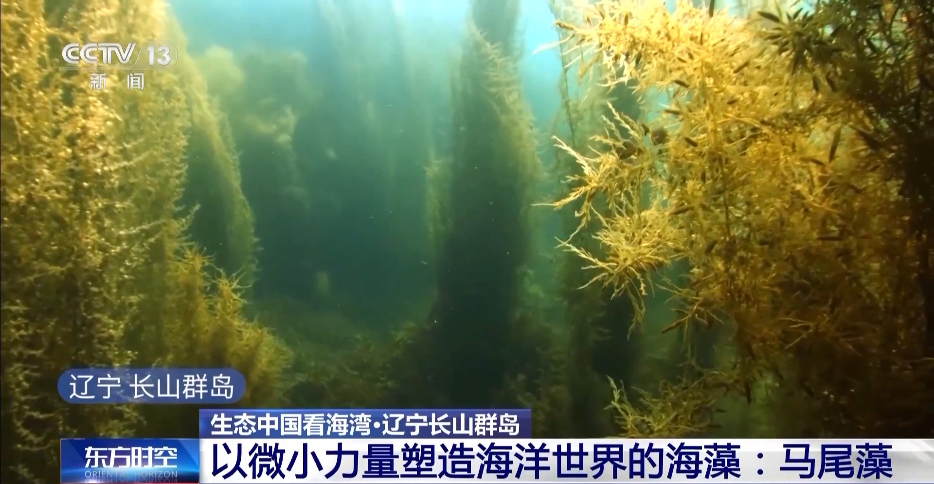 在遼寧長山群島有一種叫馬尾藻的海洋藻類,它們一束束地纏繞在一起,最長的可達十幾米。我國是馬尾藻主要產地之一,藻類群落不僅是眾多海洋生物的棲息地,還在全球碳循環(huán)、海洋生態(tài)平衡中扮演著重要角色。在海水中,它的顏色是深黃綠色。