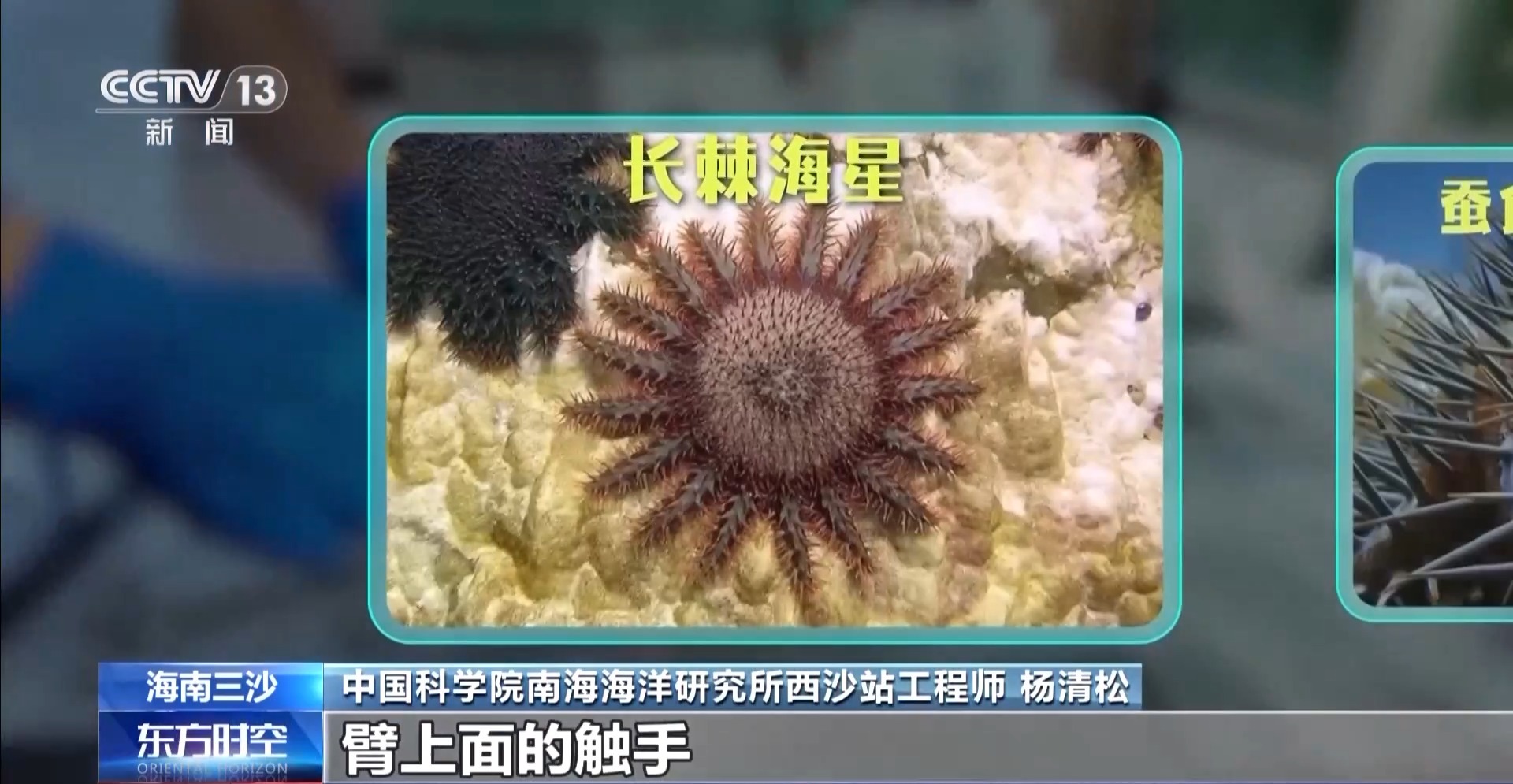 中國科學院南海海洋研究所西沙站工程師 楊清松:這個海星有十幾只臂,臂上面的觸手,它會伸出來,它把它的胃整個排出來,把珊瑚包裹住,把整個珊瑚的組織給消化掉,只剩骨骼了,這個跟珊瑚白化不一樣,吃掉就沒辦法了。