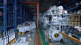 記者在位于青島西海岸新區(qū)的中船發(fā)動(dòng)機(jī)生產(chǎn)車間內(nèi)看到,一臺(tái)四五層樓高的船舶發(fā)動(dòng)機(jī)正在緊張安裝當(dāng)中。
