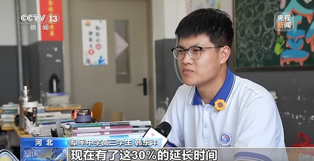 阜平中學(xué)高三學(xué)生 韓東洋:正常人他們寫300字左右,我大概才能寫200多字,就比如說語(yǔ)文,平常模擬考試的時(shí)候,大概還有個(gè)二三百或三四百字就寫不完,現(xiàn)在有了這30%的延長(zhǎng)時(shí)間,心里就比較踏實(shí)了。