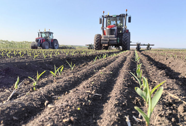2025年5月23日,在北大荒集團黑龍江建設(shè)農(nóng)場有限公司第三管理區(qū),農(nóng)機工人駕駛搭載北斗衛(wèi)星導航自動系統(tǒng)的大型中耕深松機械,對剛出苗的玉米地塊進行深松放寒作業(yè)。新華社發(fā)(許穎獻攝)