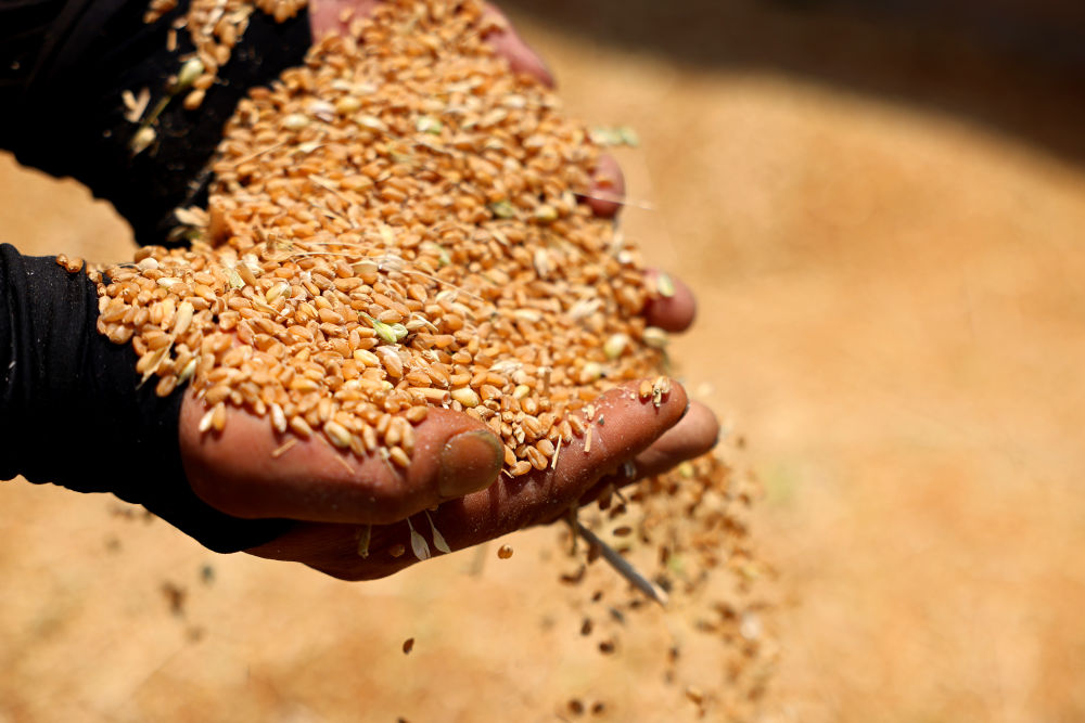 河南省商丘市李莊鎮(zhèn)潘堂村種糧大戶閆照峰在查看新收獲的小麥。新華社記者 姜亮 攝