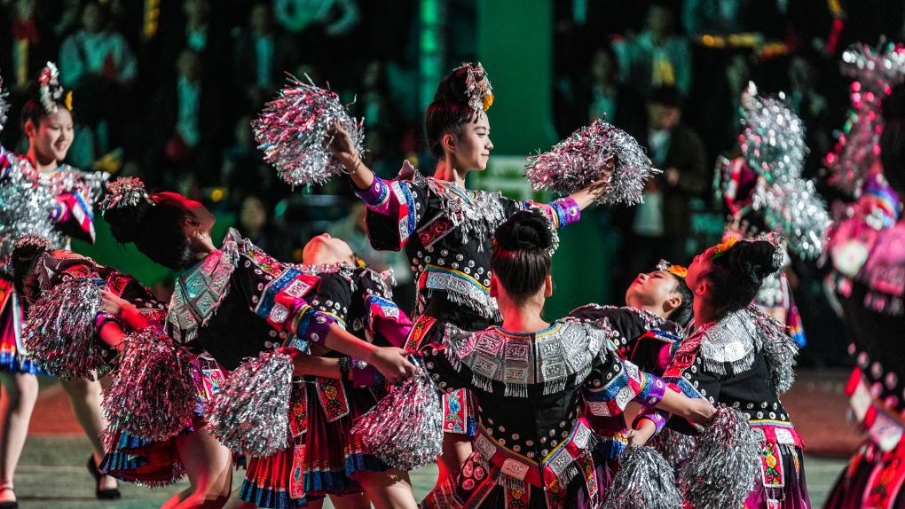演員在大地流彩·2025年全國和美鄉(xiāng)村籃球大賽(村BA)啟動(dòng)儀式上進(jìn)行歌舞表演。新華社記者 陶亮 攝
